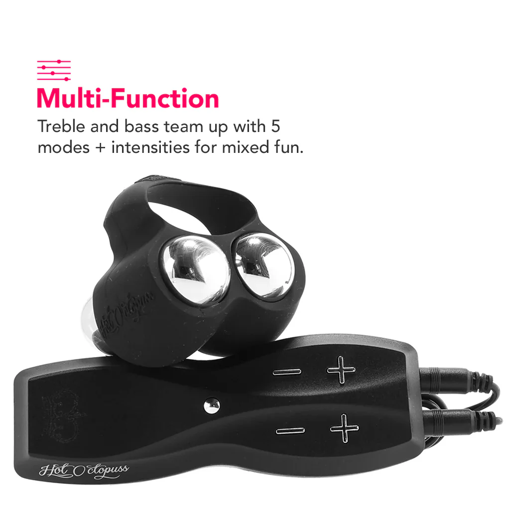 True, Jett's sensation will probably be a little different than what you're used to, but change can be very very good! Plus, you can still stroke below the vibe ring, if you want. Speaking of different, the Treble & Bass line in this unique play tools's title references Jett's two included bullets. One is packing five modes and five speeds of high frequency (buzzier) vibration, while the other offers the same amount of deep, rumbly stimulation. Both are controlled using an included power pack with individual keys for each bullet, so you'll have nearly endless pleasure permutations to play with.